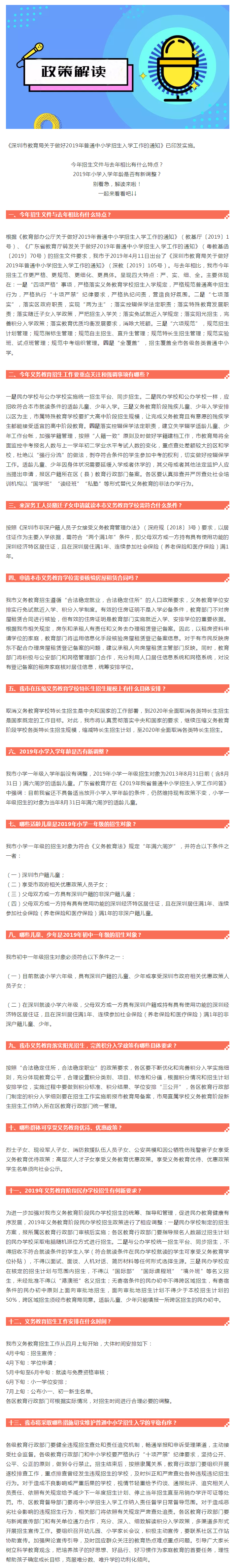 十三问答解读深圳市2019年普通中小学招生入学政策