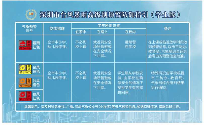 深圳市台风暴雨高级别预警防御指引(学生版)