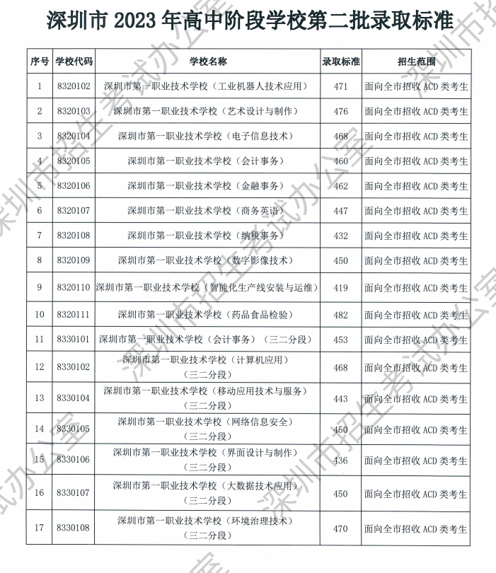 深圳市2023年各高中阶段学校第二批最低录取标准(分数线)根据考生中考成绩、所报志愿顺序和各学校的招生计划投档产生,投档原则是“分数优先,依照志愿顺序”。